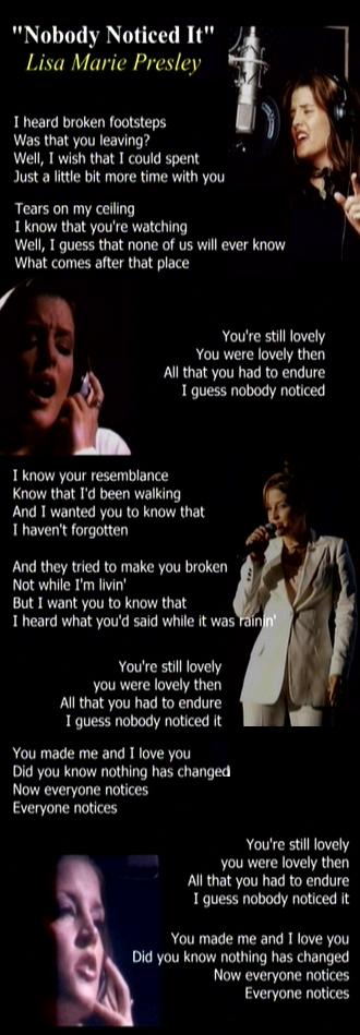 ESCUTE UM TRECHO DA MÚSICA LIGHTS OUT DE LISA MARIE (CLIQUE AQUI) CLIPE DE LIGHTS OUT Também foi lançado o clip para promover o álbum, a música escolhida foi "Lights out". O lançamento do disco foi o melhor possível, logo de cara ficou em 5º. lugar dos discos mais vendidos segundo a Bilboard. Nada mal para uma cantora estreante como Lisa. Não só as vendas confirmaram isso, os críticos até agora só fizeram elogios e esperam um futuro grande para Lisa! Até mesmo a Rolling Stone, uma das revistas mais famosas de música, elogiou Lisa e fez a inevitável comparação de Lisa e Elvis, chamando Lisa de "Elvis Girl" |